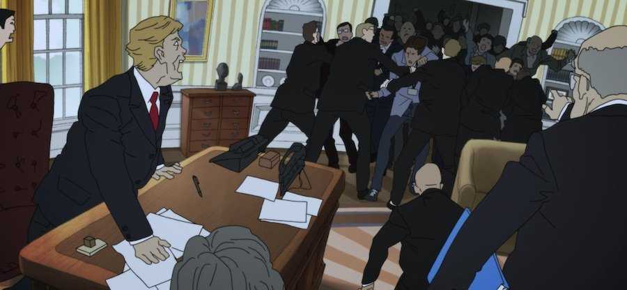 Действие основных частей Devilman разворачивалось в современном мире, и в новом Crybaby происходящее актуализировано: в отличие от показанного в фильмах восьмидесятых, здесь у героев уже есть смартфоны и интернет, экшн-камеры и даже президент Трамп, имя которого не произносят вслух, но все и так понятно.