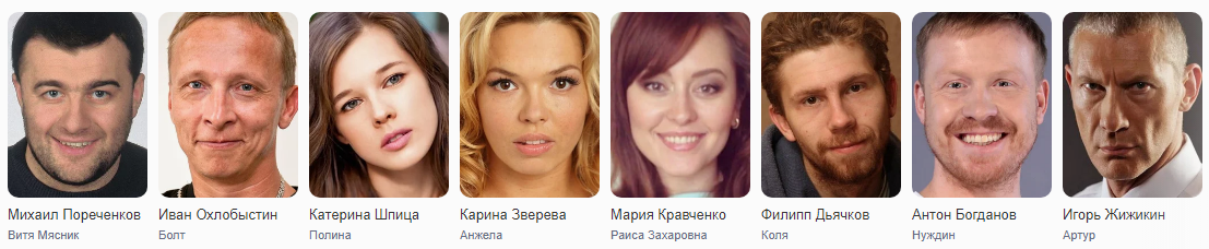 - Полина Глебова – Катерина Шпица («Молодая гвардия», «Актриса», «Елки 5», «Завтрак у папы»);