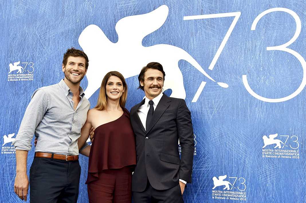 Остин Стоуэлл, Эшли Грин, режиссер Джеймс Франко на фотоколле фильма «И проиграли бой» в рамках 73-го Венецианского кинофестиваля, 3 сентября 2016 г.